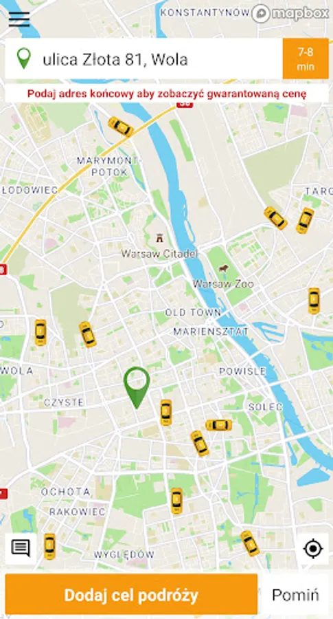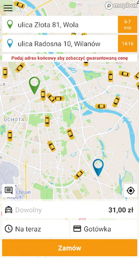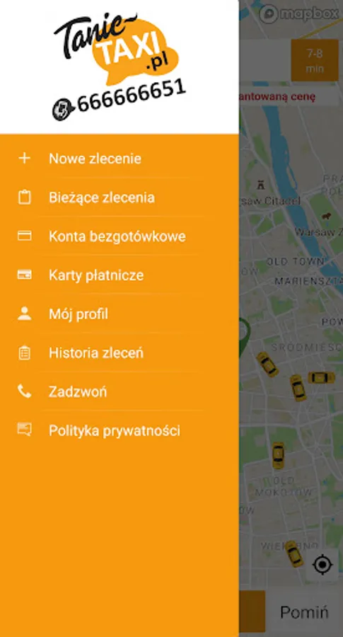 Application for ordering taxis at the Tanie-Taxi corporation in Warsaw.