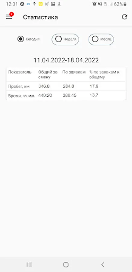 Based on the results of completed tasks, the application allows you to analyze statistics for the selected period.