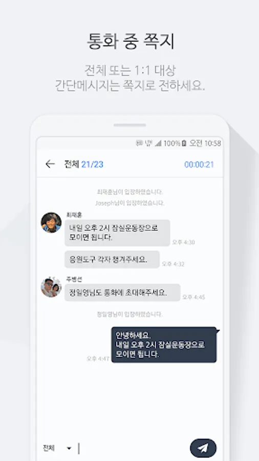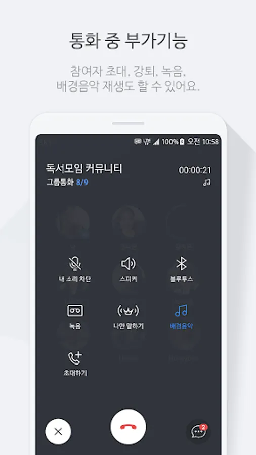 -Individual billing instant call for participants: This is a calling function created for customers of other companies and SK Telecom Ting/limited/prepaid rate plan customers. When the moderator calls, the connection access number is delivered to the participants through ①ARS phone call>② text message, and it is a structure in which individuals make outgoing and participate in group calls. Participants will be charged a call fee according to their carrier's policy. (Reflected from app version v2.6)