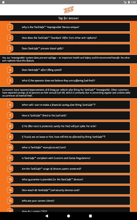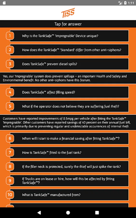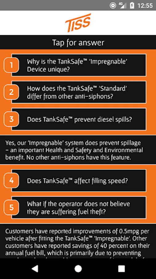 The TISS App is a one stop shop and dynamic information portal for our award wining TankSafe™ fuel security and safety solutions. The App has been specifically developed to enable you to access key information instantly for both yours and your customer's convenience and benefit.
