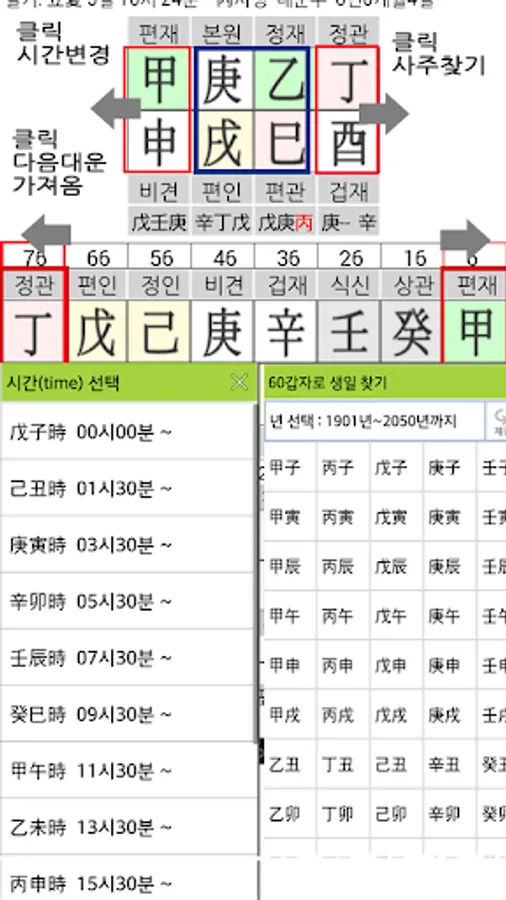 Four-week view function - Finding by lunar calendar, 60 Find by letter