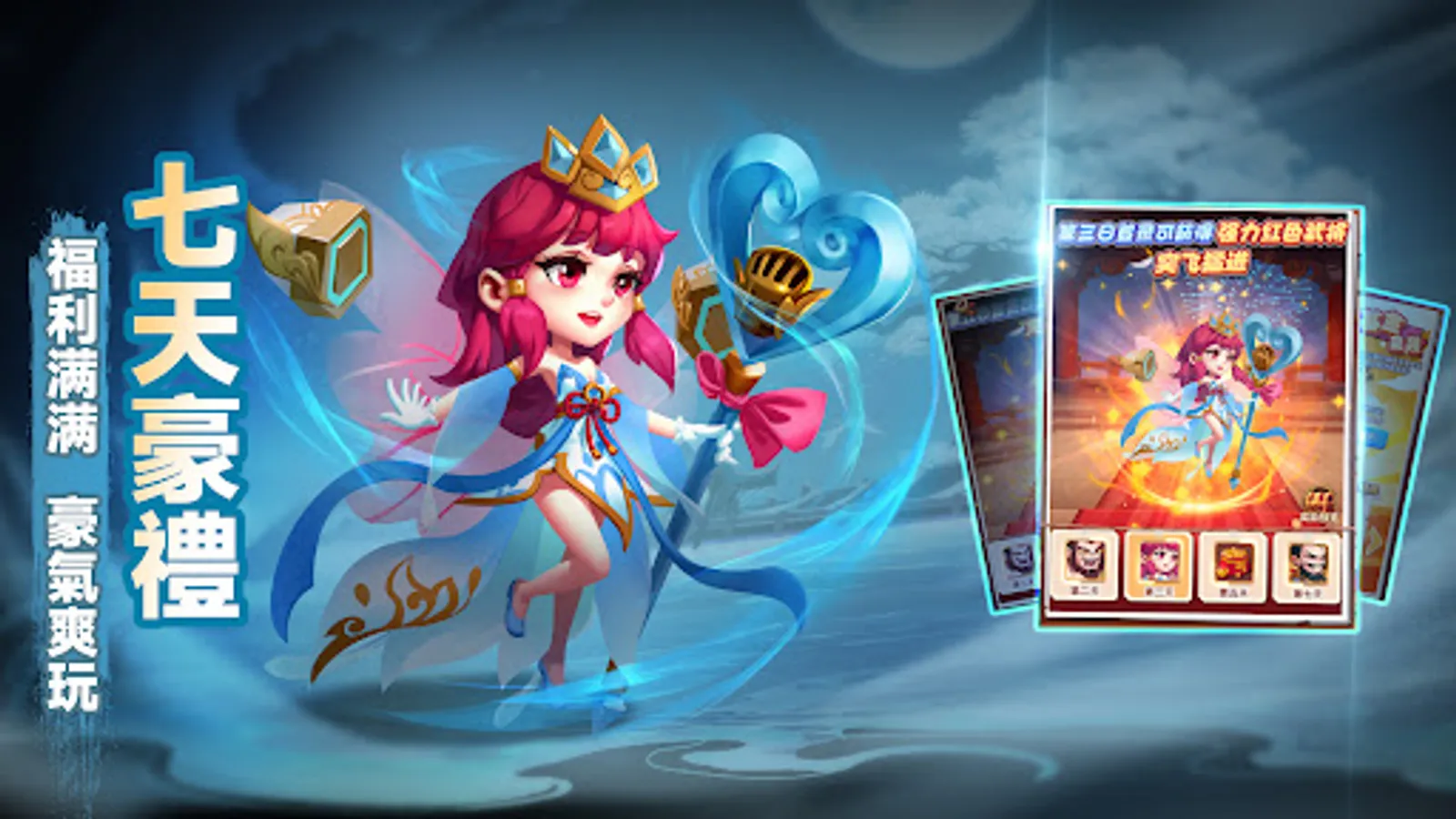 "Tiantian Three Kingdoms" is a strategy card mobile game for young famous generals. The male protagonist travels back to the troubled times of the Three Kingdoms. He collects the remaining pages of the Three Kingdoms as the main line. He develops characteristics and mixes freely to create a unique and super powerful army to fight in the bloody troubled times. ; Added new tower climbing mini-game to help unite the world happily!