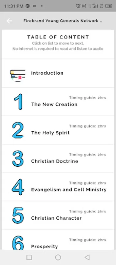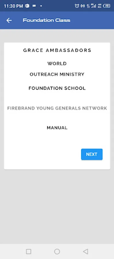 _ Our Foundation school manual has 8 item on the table of content each lessons is designed to empower users to grow in faith. users are exposed to the undiluted truth about salvation. and their journey as a new creation