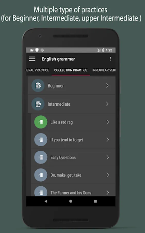 ☞ Collection practice: more than 15000 practice question which are divided for beginner, Intermediate and upper Intermediate
