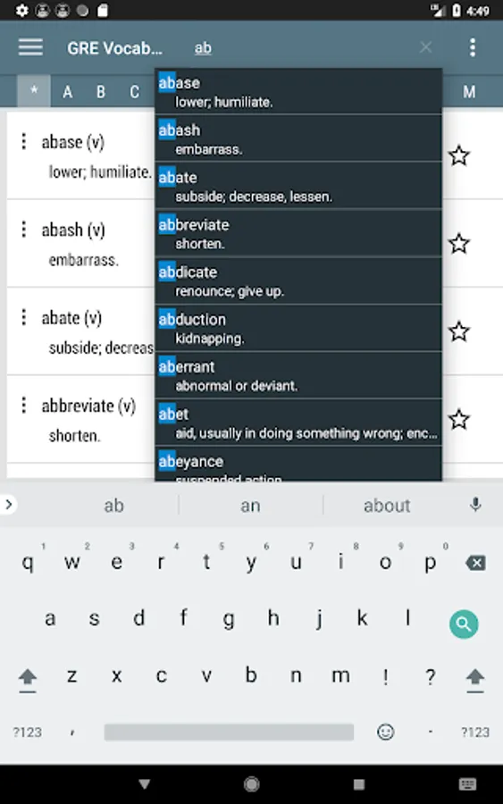 By using this app, you can improve your gre vocab knowledge and have a chance to improve your gre scores.