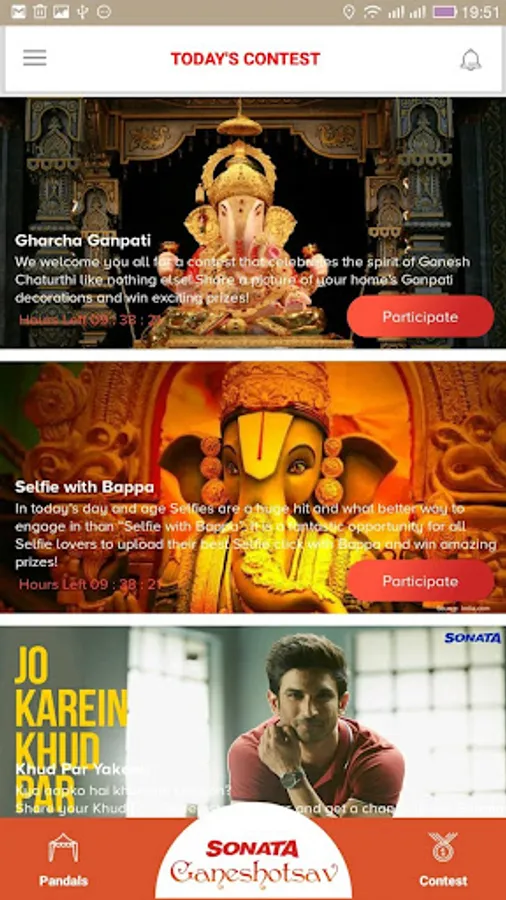 Sonata Ganeshotsav is India's first one-stop destinations for everything that you need to know about celebrating Ganesh Chaturthi in 2018. One touch that enables you to scroll and explore the wide world of Ganpati, offering 200+ mandap locations, events to keep you engrossed in the colors of Ganpati Bappa, One Festive guide for all your needs (from Ganpati Aarti, Decorations, Ganpati Matra, Modak recipes to Fashion Fun), along with numerous visarjan points around the city. Not just this! The merriment is doubled with some amazingly fun in-app contests for each day to mark this 11 days long festive carnival. Sonata Ganeshotsav lets you enjoy a hassle-free festival fever with ease and comfort that is just a touch away. Yell "Ganpati Bappa Morya" the Sonata style this year. Powered by Titan India!