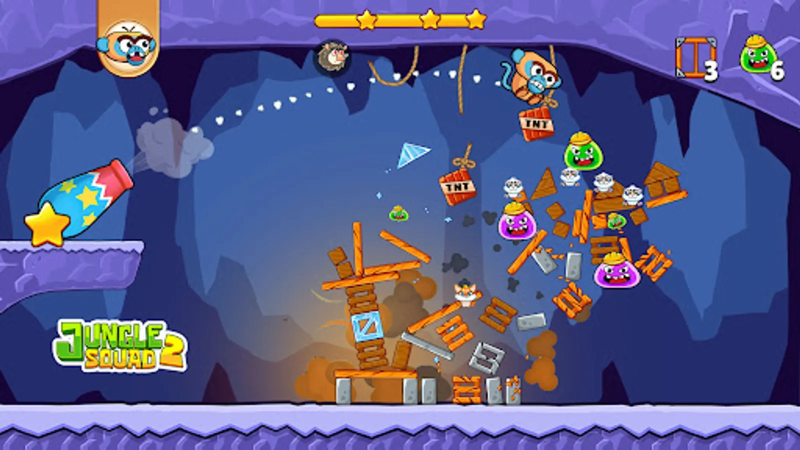 Jungle Squad: Cannon Shooter is really great for challenging and improving your strategic thinking! Which enemy to hit first? Which slingshot, cannon, or bazooka upgrade is the most essential to win the jungle clash? Find answers to these questions as you play Jungle Squad!