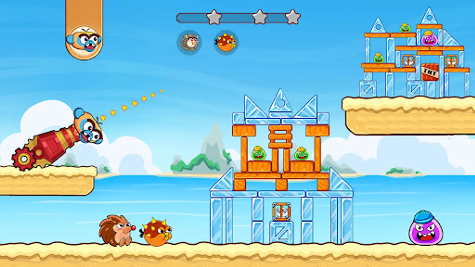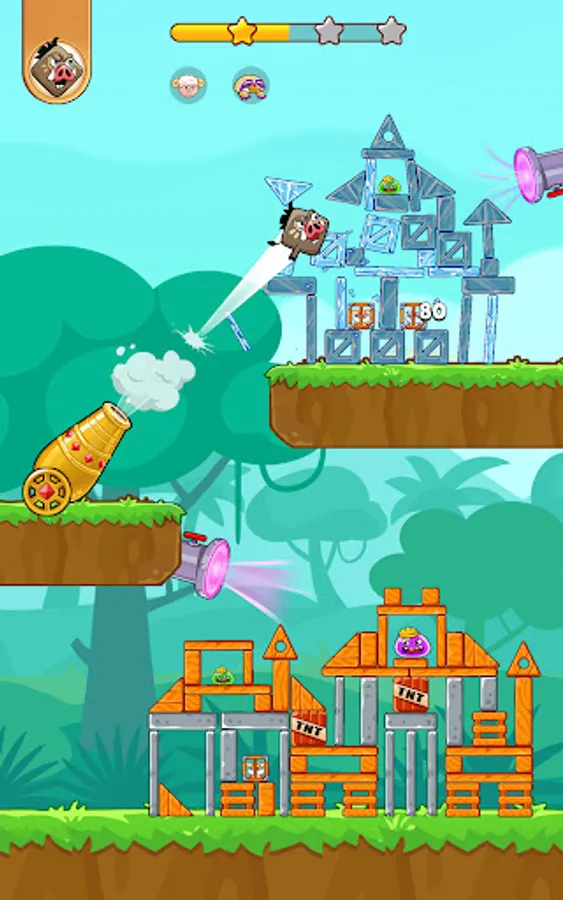 Start the exciting slingshot, cannon, bazooka adventure right away!