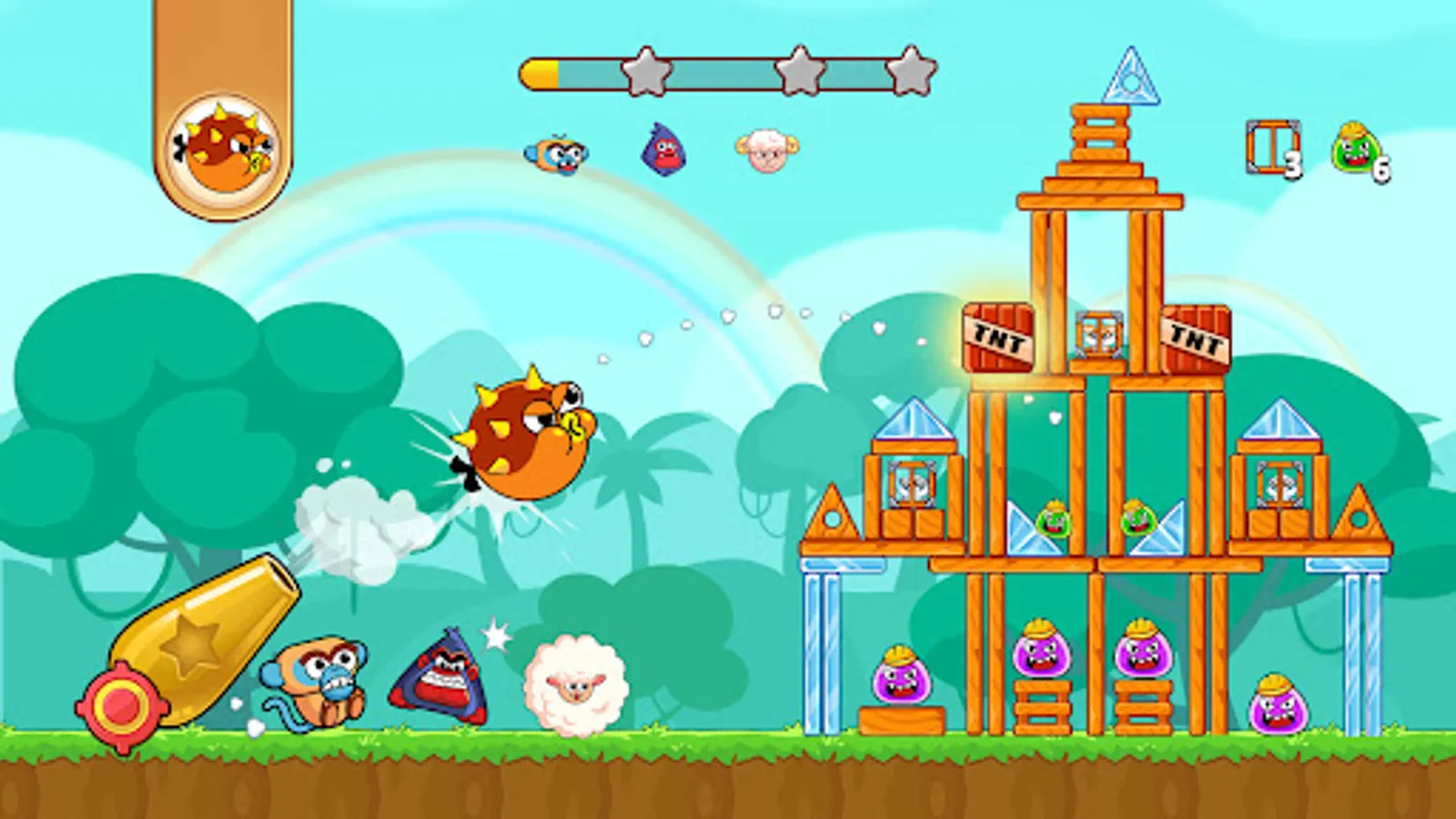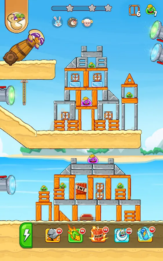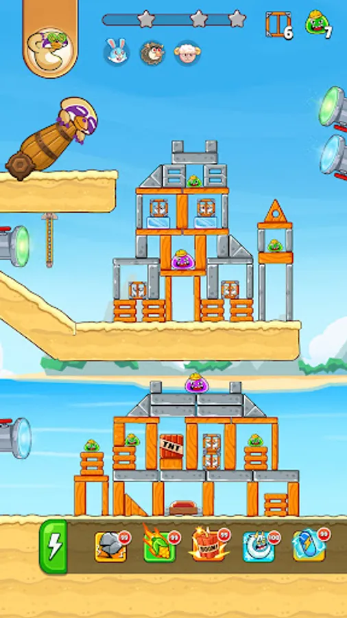 Your mission in the game is to use the cannon, bazooka, slingshot to shoot Jungle Squad animals flying at the enemies' towers, destroy them and rescue your kidnapped pals.