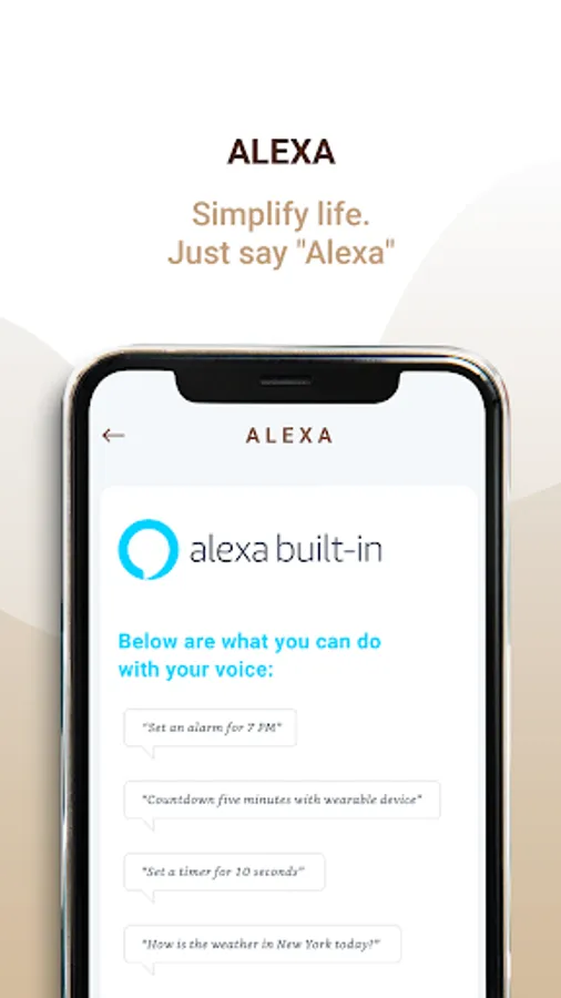 - Enable features that simplify your life like Alexa,. With Alexa built-in, you can get things done with a breeze. Ask Alexa to book a cab, order food, set a timer or alarm, check weather and much more.