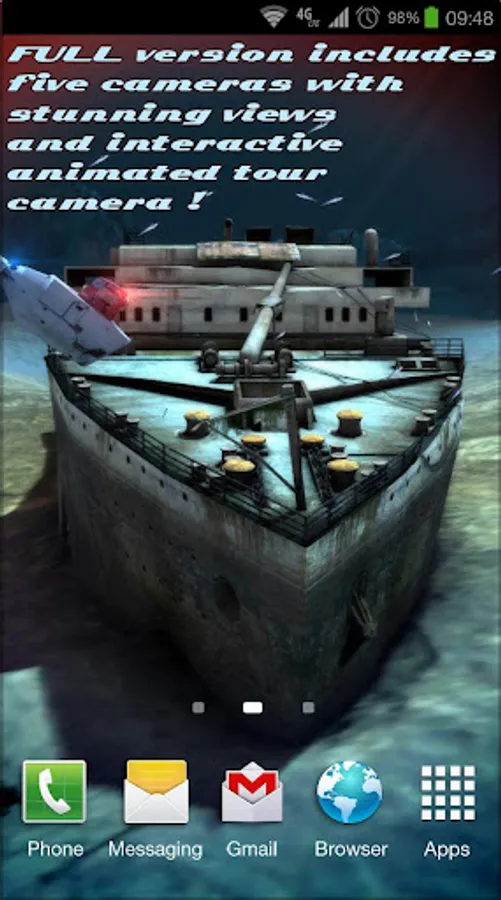 Titanic 3D Free lwp made with OPEN GL 2.0 and optimized to consume low resources and also not to drain your battery.
