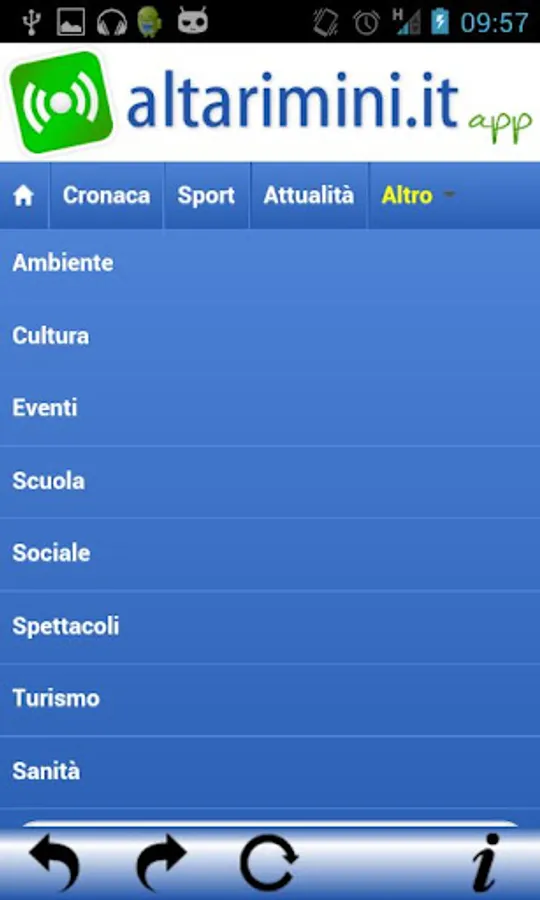 Altarimini, the portal more up to date and full of information, and the province of Rimini, now becomes really useful application for Android that allows you to quickly look up the news for news, current events, sports, environment, culture, education, social, entertainment, tourism and health.