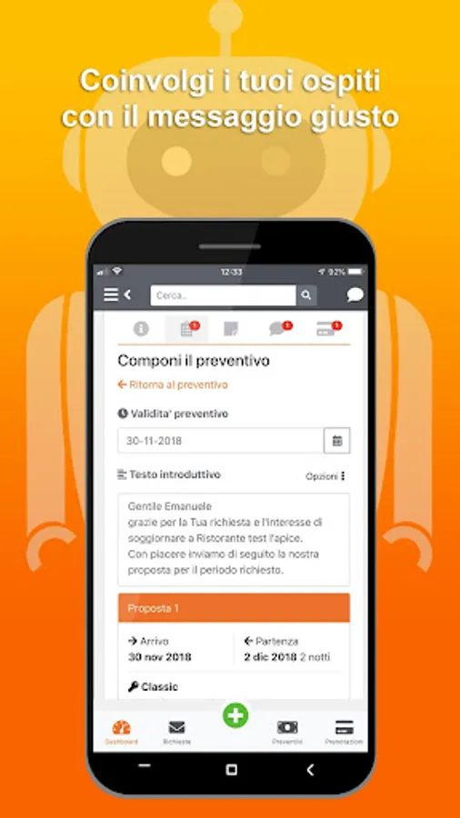 Even on the move, you can immediately choose the most suitable room, the best offer model based on your client's target and send in a few touches a graphically appealing and at the same time very clear and detailed accommodation proposal.