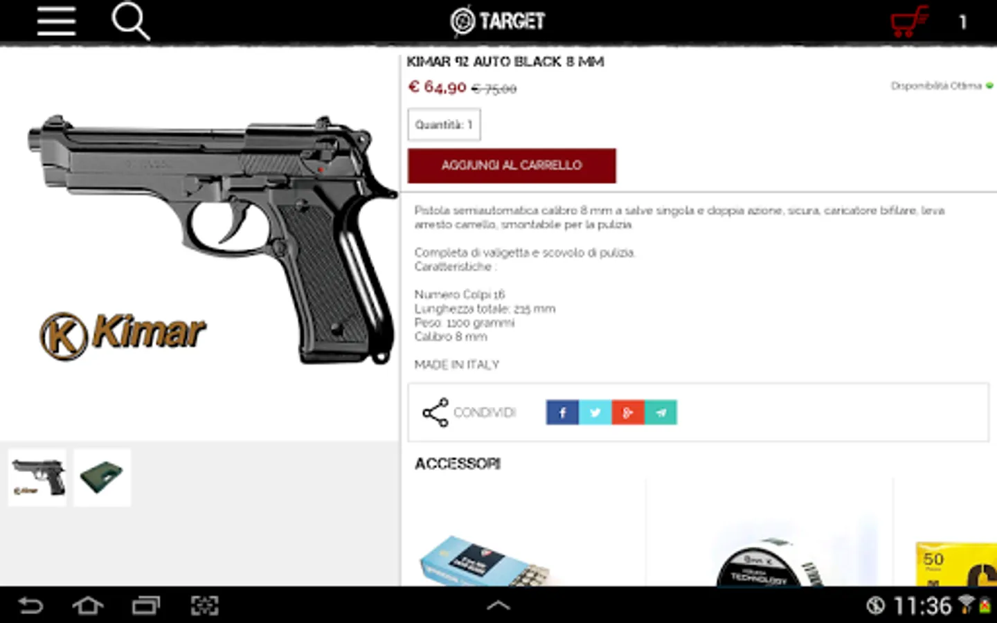 Shop Online Armory First Class Target Contrada del Collegio, 53 - 47890 San Marino (Republic of San Marino)