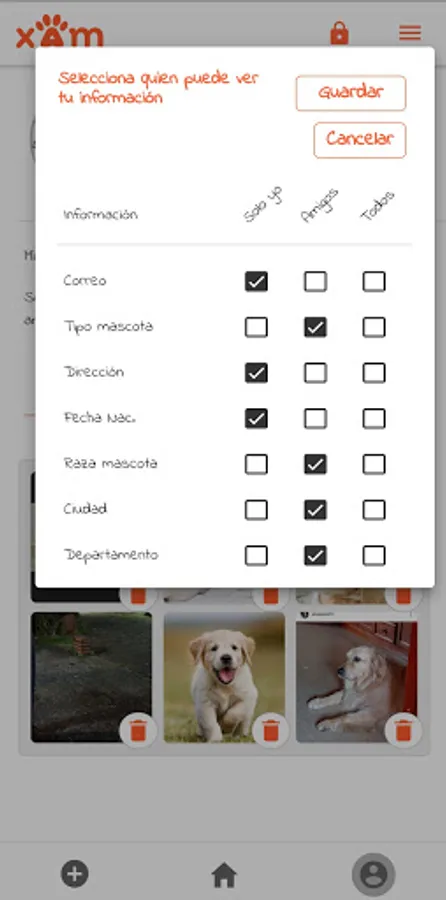 For this reason we created this app called XAM designed as a social network for your pet (dog and / or cat) in the year 2021. With the aim that the user can upload photos and videos of their pets in their day to day, through of their status or in their profile, they will be able to interact with other users through emoticons (I like, I love and I dislike), comments, tips on topics of interest, also, companies with products related to pets will be able to advertise with us .