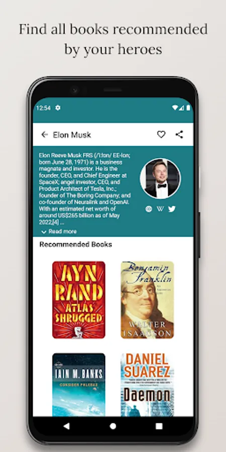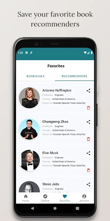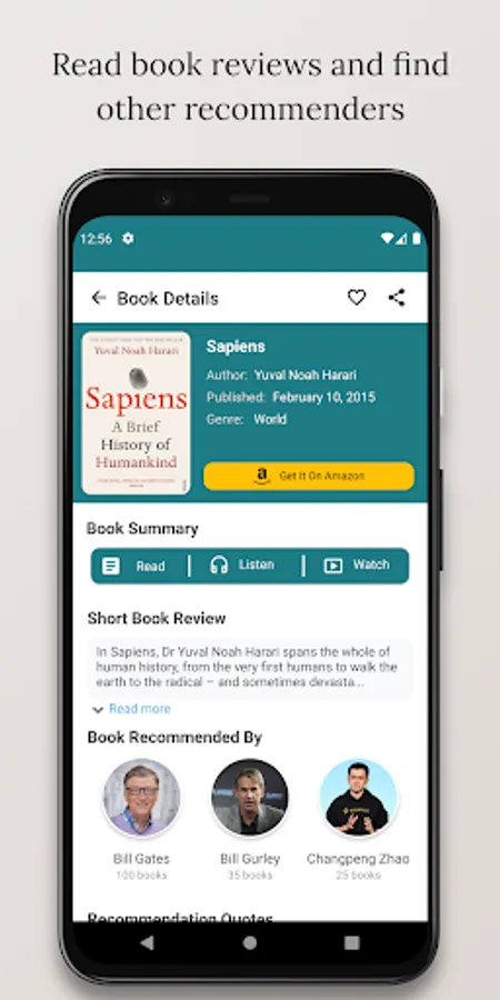 ● Book recommendations app, with hundreds of recommended books from world's top successful and richest people, goodreads books, recommenders