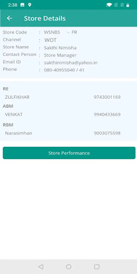 3. User can also see the store details, like contact details, store type, ABM, RBM, etc.