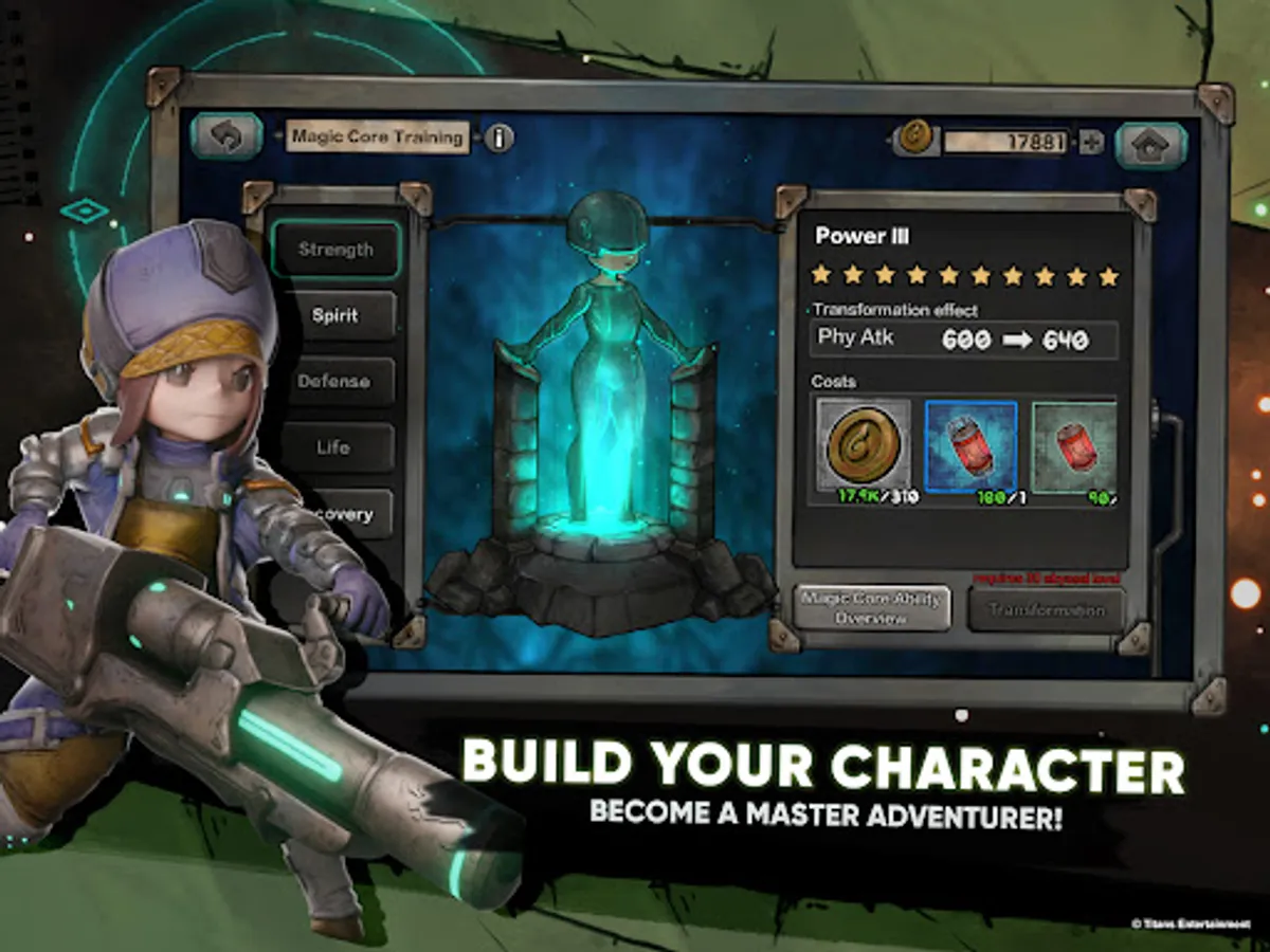 Fight mystical beasts and uncover an expansive dungeon filled with powerful cores of ancient technology. Advance your character's abilities with roleplaying game mechanics to improve your fighting abilities and the quality of your equipment. Each delve brings with it danger, but also the chance of great rewards.