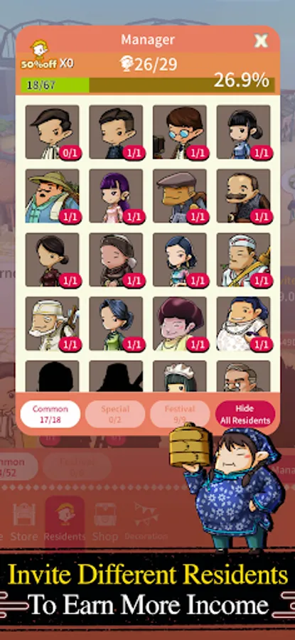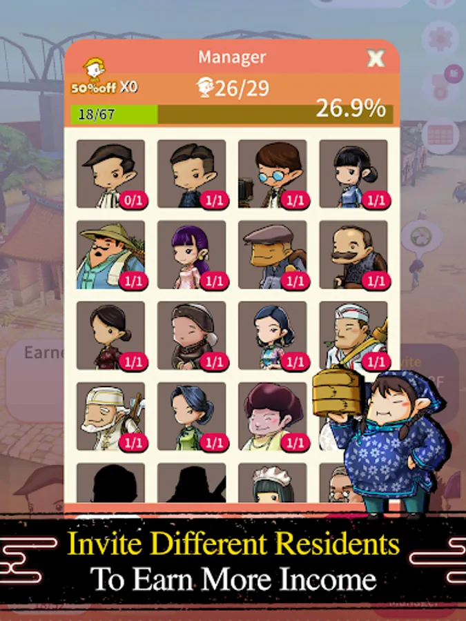 ☗ Populate your town with people from all walks of life. Get hidden characters by unlocking achievements!