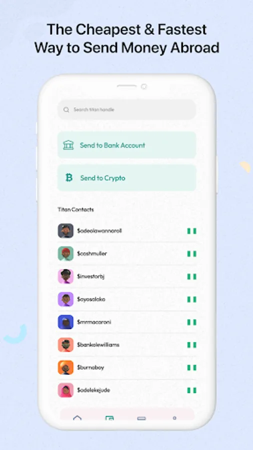 Fund your titanXchange wallet and send money freely to friends and family within the app or to any bank account or virtual wallet instantly.