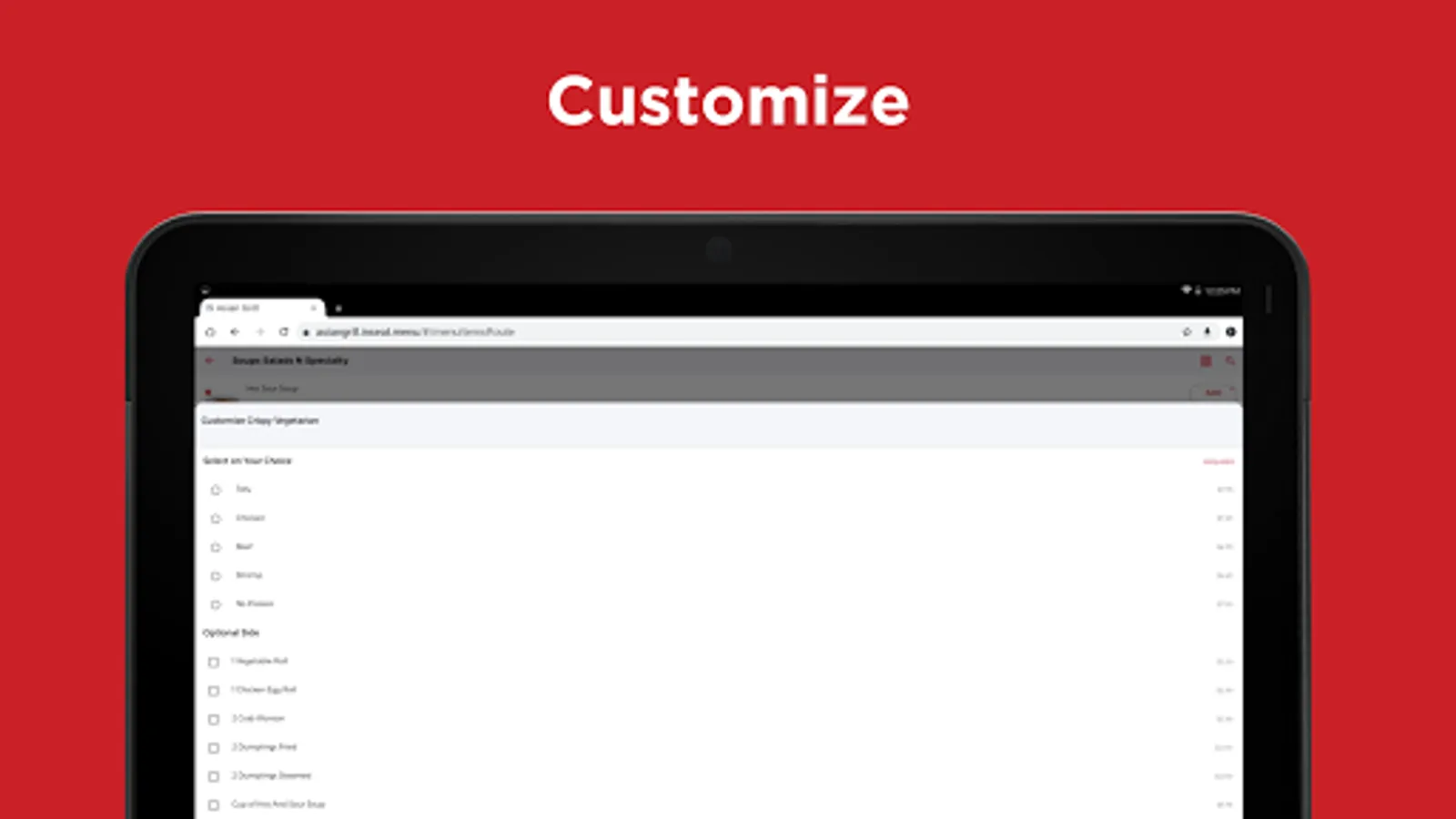 Mobile ordering app allows customers to order fresh made to order pan-asian food for pickup. Customer can even use the mobile app for faster dine-in experiences.