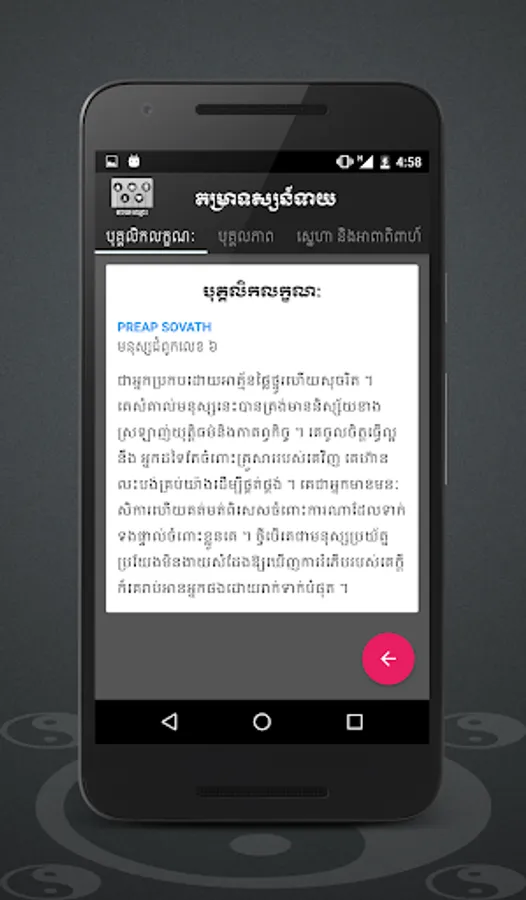 This app has included Napoleon's name horoscope in which will show you about your characteristic, personality, love, job and your economy by determine your name written in latin or English.