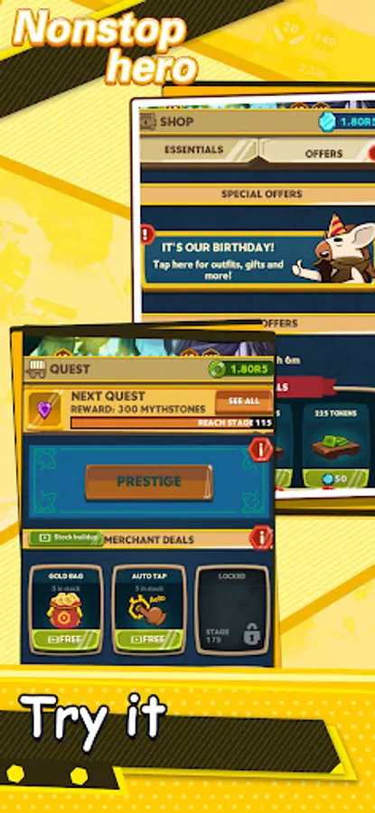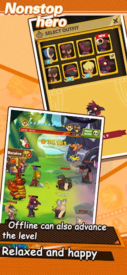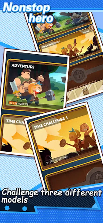 Nonstop hero is a placement role-playing game. You need to develop heroes to promote more levels. Unlike traditional placement games, you need to constantly start over with prestige, so as to obtain resources to develop your team and make the next level promotion easier.