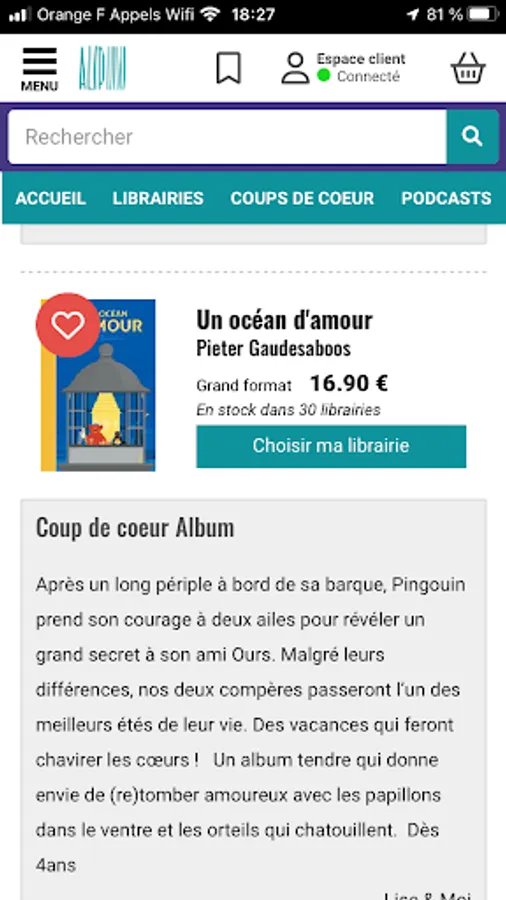 Easily reserve your books in an independent bookstore near you, thanks to the geolocation of the ALIP app.