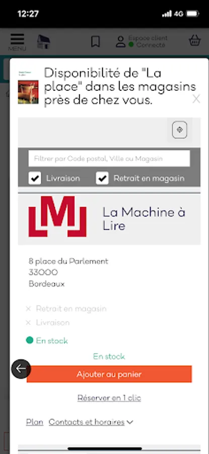 LINA allows you to search and reserve your books in bookstores throughout New Aquitaine, while promoting your local independent shops. It offers the bookstores near you where the book is available and where you can reserve it before picking it up by click and collect.