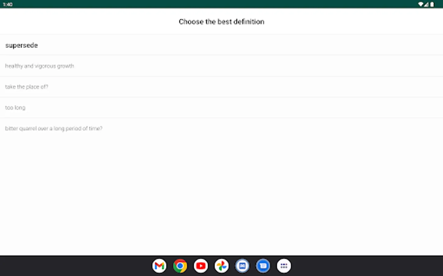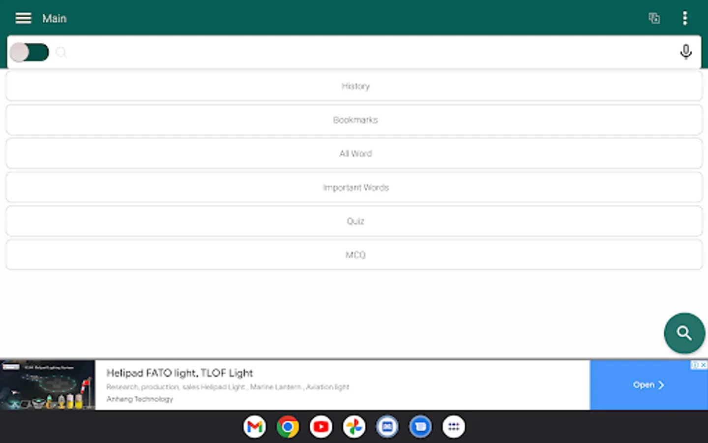 MCQ Test which can be picked from history, favorites, common database and question types can be picked from meaning, synonyms, antonyms and grammar
