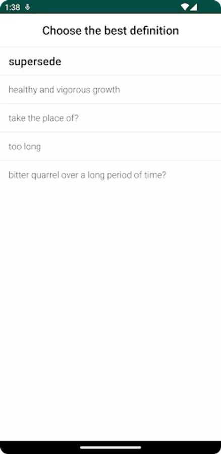 MCQ Test which can be picked from history, favorites, common database and question types can be picked from meaning, synonyms, antonyms and grammar