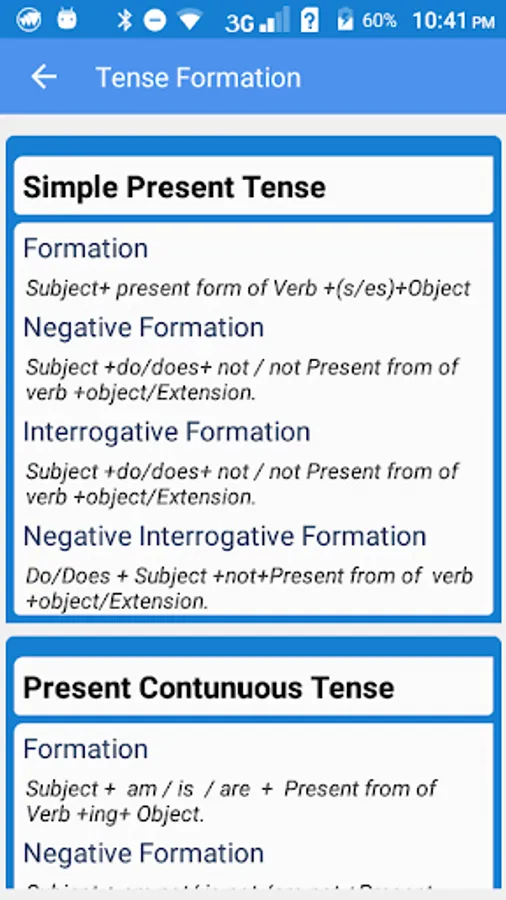 Explanation of Tenses using Affirmative, Negative, Interrogative, Negative Interrogative sentences .