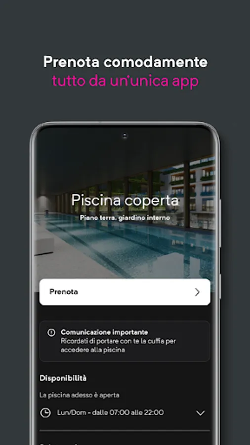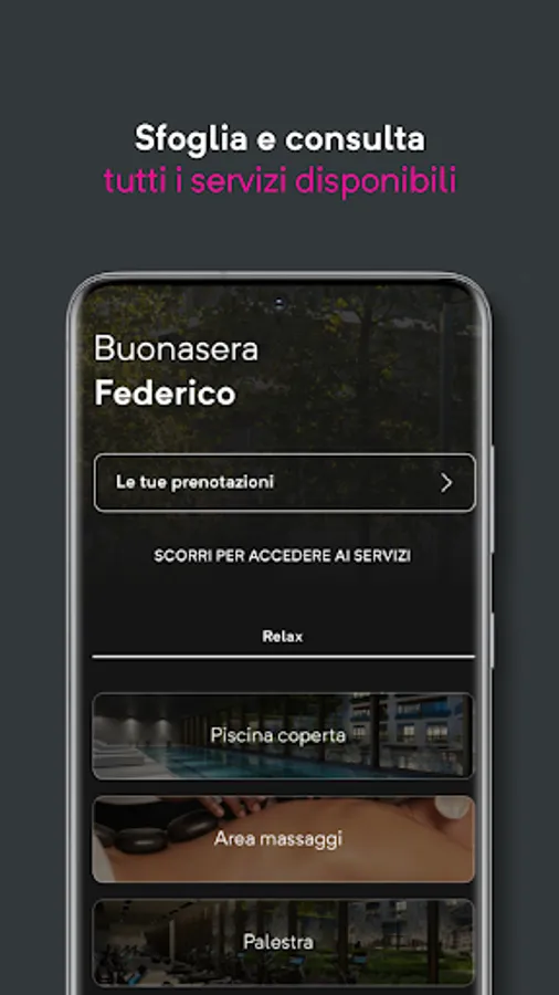 Lo stesso vale per i servizi esterni quali lavanderia, car wash, un database completo di professionisti del benessere a disposizioni per trattamenti e massaggi direttamente a casa o nelle aree comuni se previsti. Tutti servizi qualificati prenotabili con pochi, semplici e veloci passaggi.