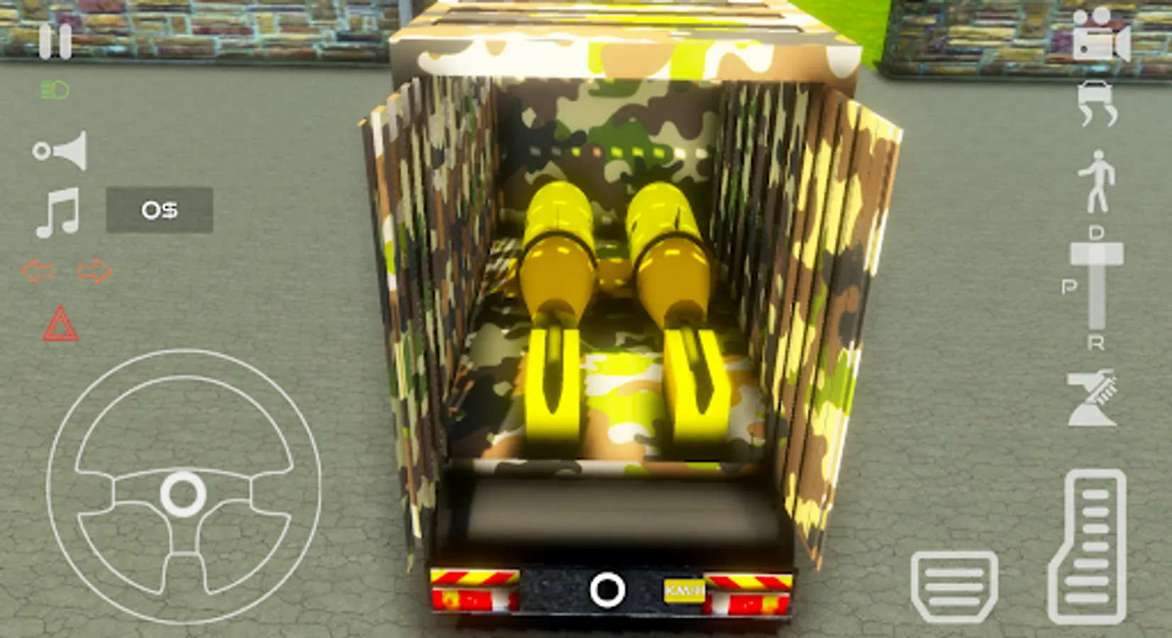 This Army Truck Simulator features 5 unique trucks, camouflage painted and heavy duty.