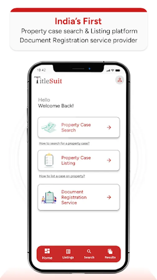 TitleSuit is a User Generated Content Web application which provides a platform to a Plaintiff/Petitioner/Claimant to upload/publish a claim on a movable/immovable property on which such Plaintiff/Petitioner/Claimant has initiated legal proceeding in regards to the claim in any forum/courts, and it also provides a platform for a prospective buyer of movable/immovable property to search whether the proposed property is involved or is under a cloud of any Suit/Claim etc.