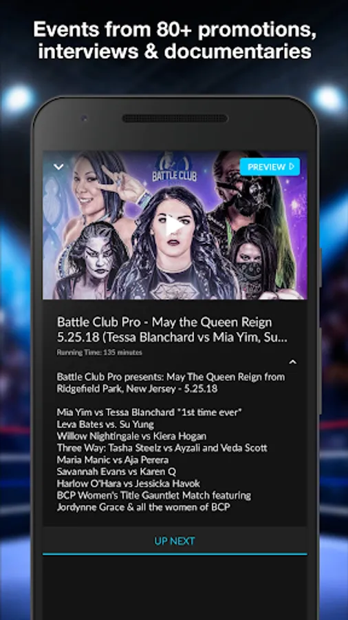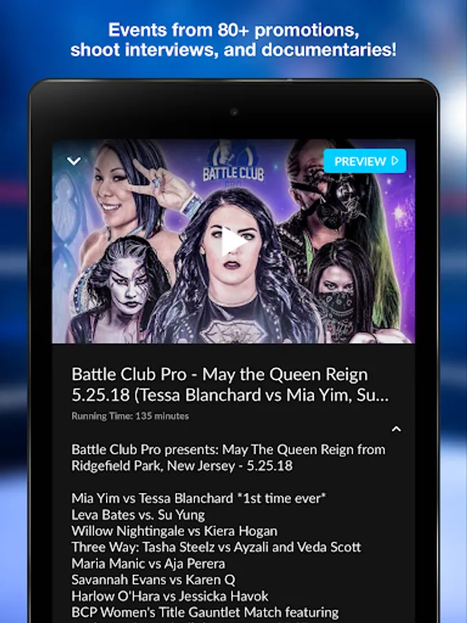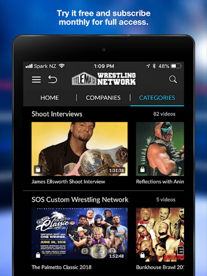 *Includes unlimited access to 80+ wrestling promotions such as Bar Wrestling, Battle Club Pro, IWA Deep South, Pro Wrestling Syndicate, Booker T's ROW, Combat Zone Wrestling, Wrestlecade, BLOW: Bombshell Ladies Wrestling, PCW Ultra, WrestlePro & more!