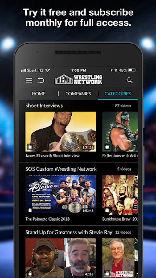 *Stream 1000s of hours of video on demand - shoot interviews, women's wrestling shows, deathmatches & documentaries!