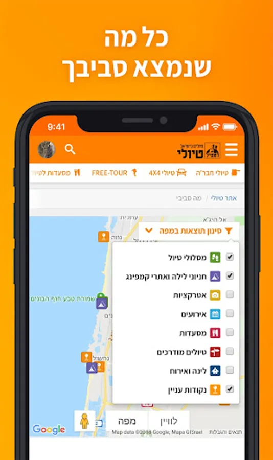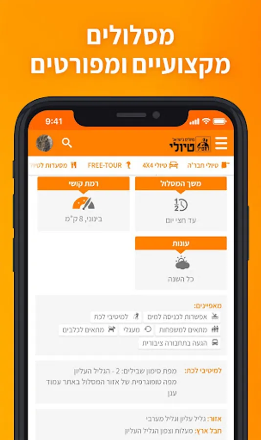 Have you reached the area in Israel and have no idea what to do with it? Just open the application, click on "Around me" and explore your wonderful country with our advanced software that will offer you all the most interesting tours in the area.