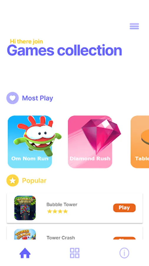 Another games like tennis and bubble tower in the popular games