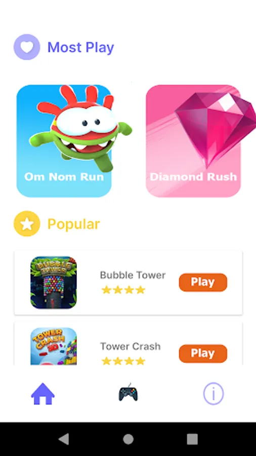 Free kick game,, Diamond rush, Table tennis , Archery , Om num run , 8 ball classic , Bubble tower , Tower crush , Element block , Moto ball , Gold mine
