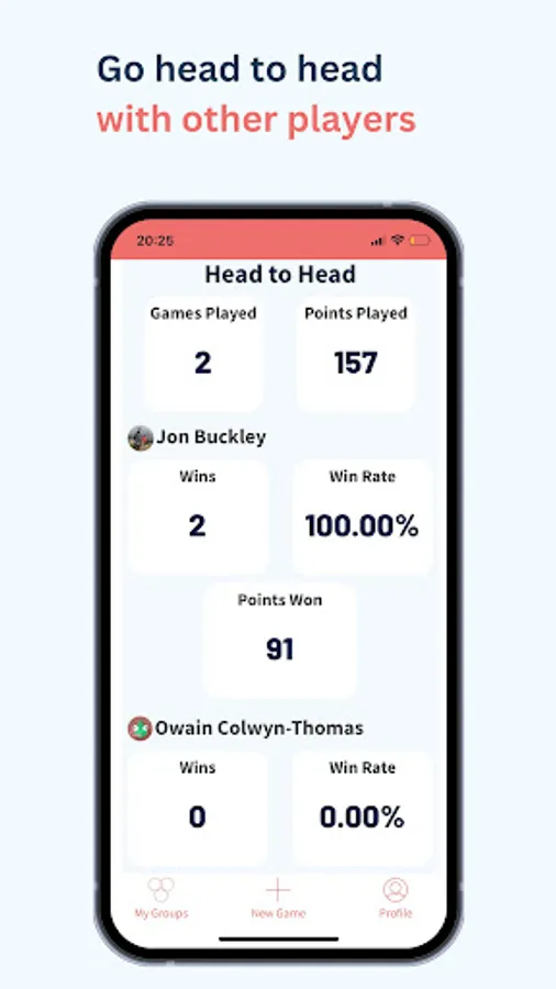 Stats - All your scores, goals and points are recorded for you to review any time while head to head stats let you compare yourself against any other player in the group.