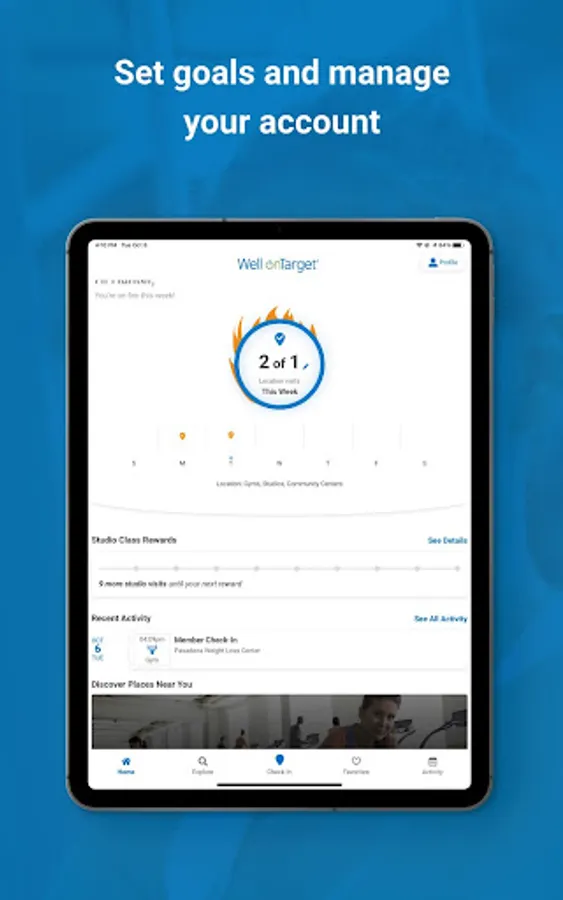 • Online account management, goal-setting, and tracking of your fitness center and studio visits