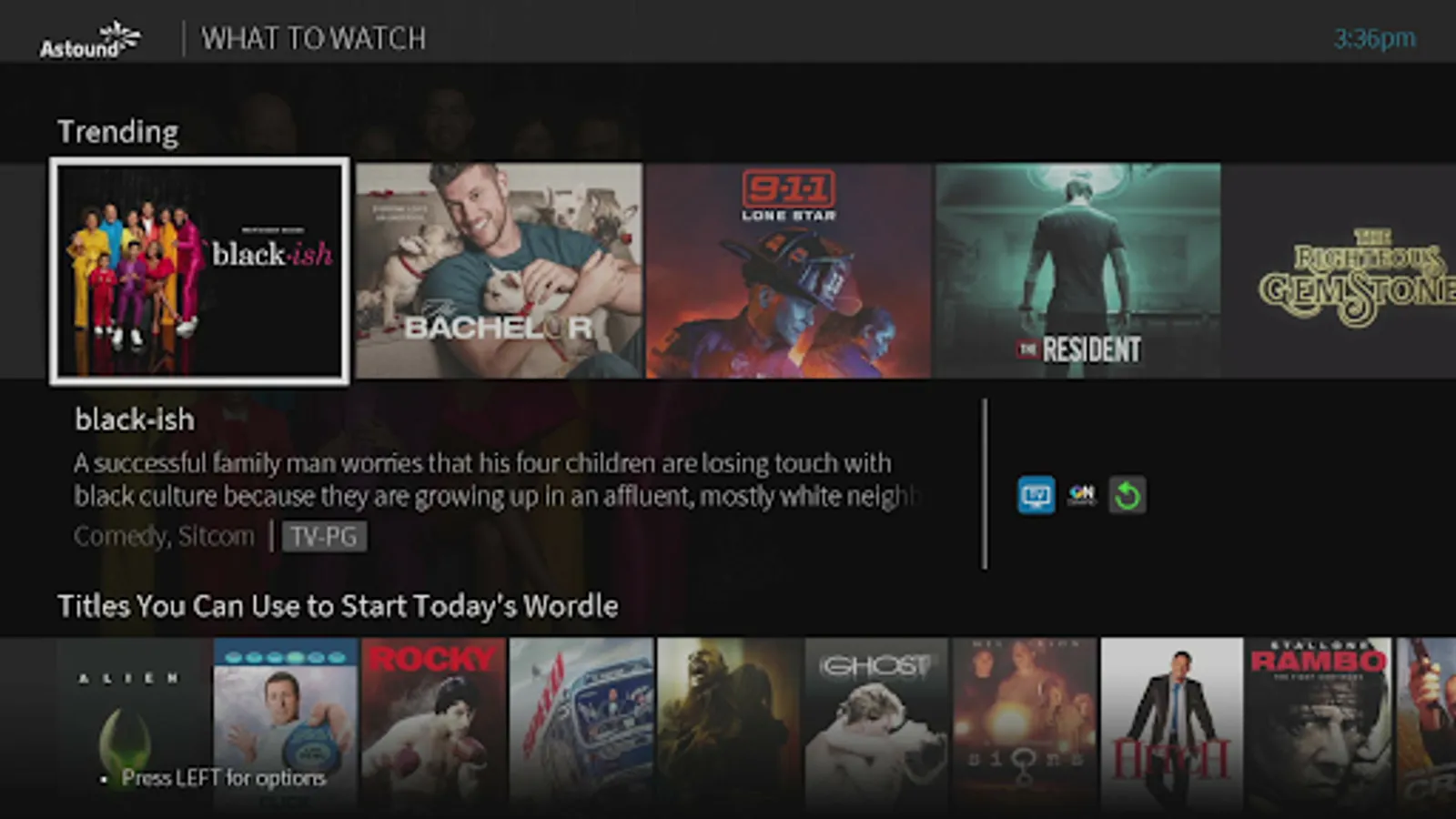 Requires compatible device, internet service, at least one Android set-top box rental and TV subscription for in-home use. Content restrictions may apply. Maximum combined 5 simultaneous Live TV and/or DVR streams per account. Astound TV customers visit https://www.astound.com/tv/astound-tv-plus for a complete list of compatible devices, support, and more information. Start over feature only available up to 3 days. The ability to “start over” or “catch up” may vary by network, is dictated by the content provider and is subject to change at any time without notice. Fast forwarding may be disabled on some shows and is controlled by the content provider. Consider setting a OnePass to record a series to allow for fast forwarding in the future. Other restrictions may apply.