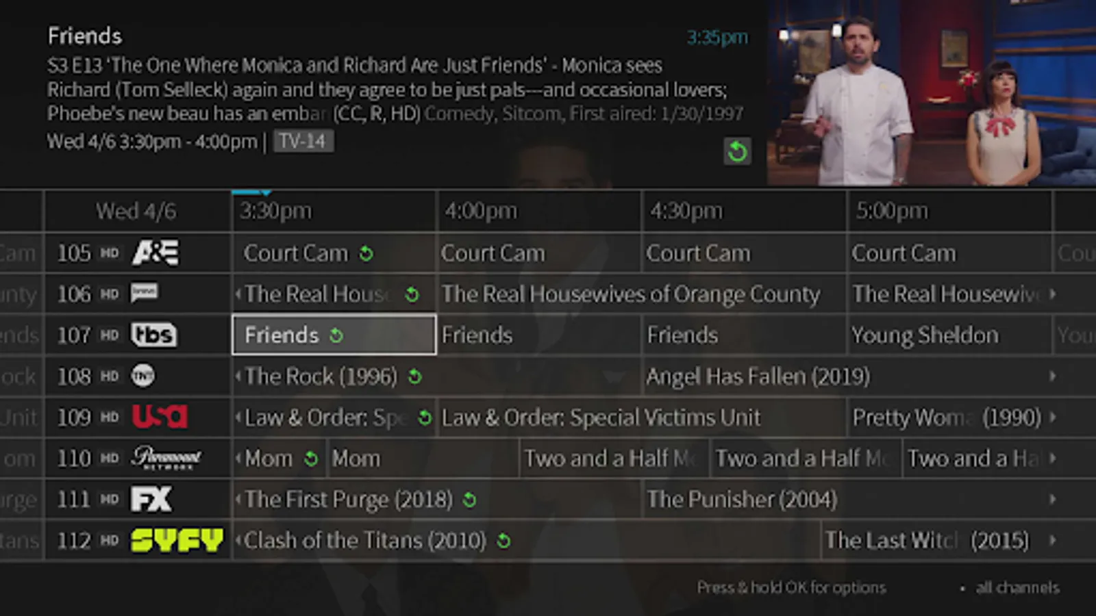 • Start Over & Catch Up— Go back in time & start a show that aired up to 3 days ago.