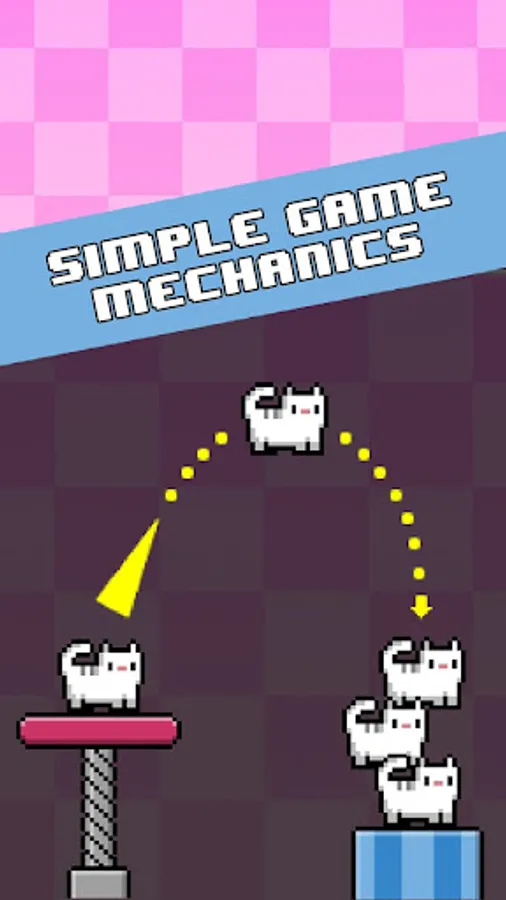Drag your finger to charge the 8-bit cat's leap and let rip, sending it flying high through the air on to a pedestal, or even better, on to the back of one of its colleagues. Repeat this a few times and lead your protégés to the pinnacle of their challenging journey.