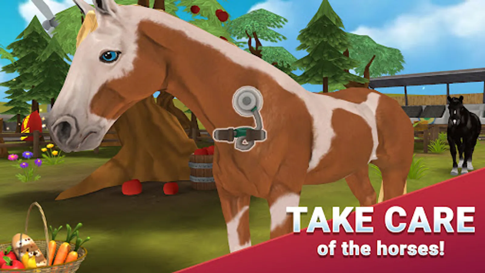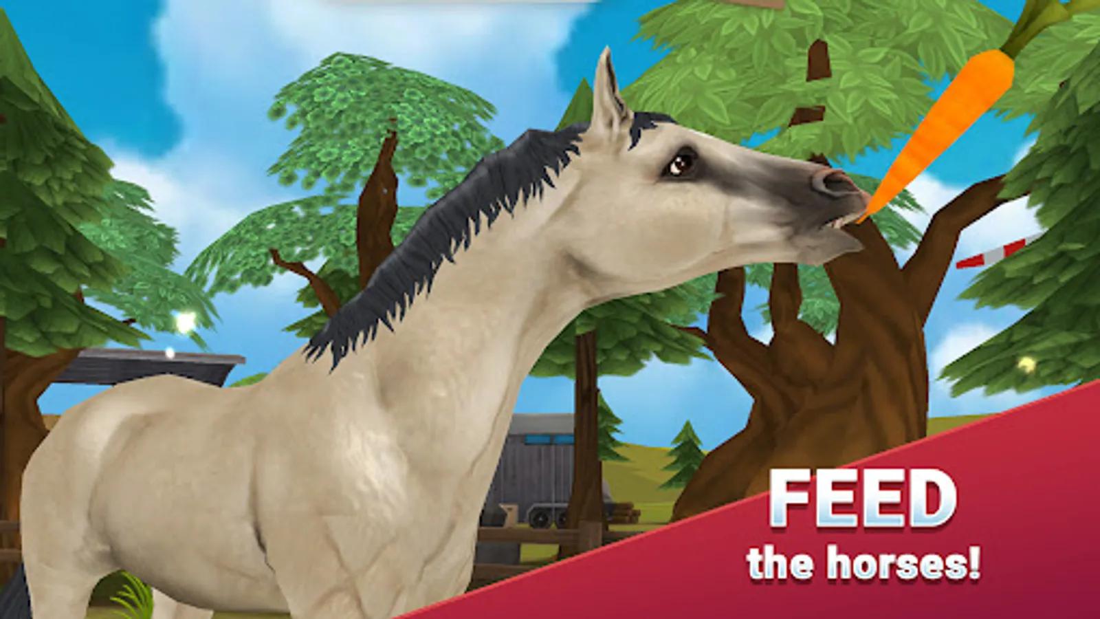 There are different horse breeds waiting for you, and each breed has its own individual needs. Take a look at the horse’s file to find out what exactly the horse needs. This will help you to provide the best care for the horse. If your horse needs more endurance play the obstacle course minigame. If the horse is lacking in confidence, you can build it up with flatwork exercises in the riding arena. To increase its ability, just play the dressage minigame. But one thing all horses have in common: they need your affection, so don’t neglect to give them treats and pet them!