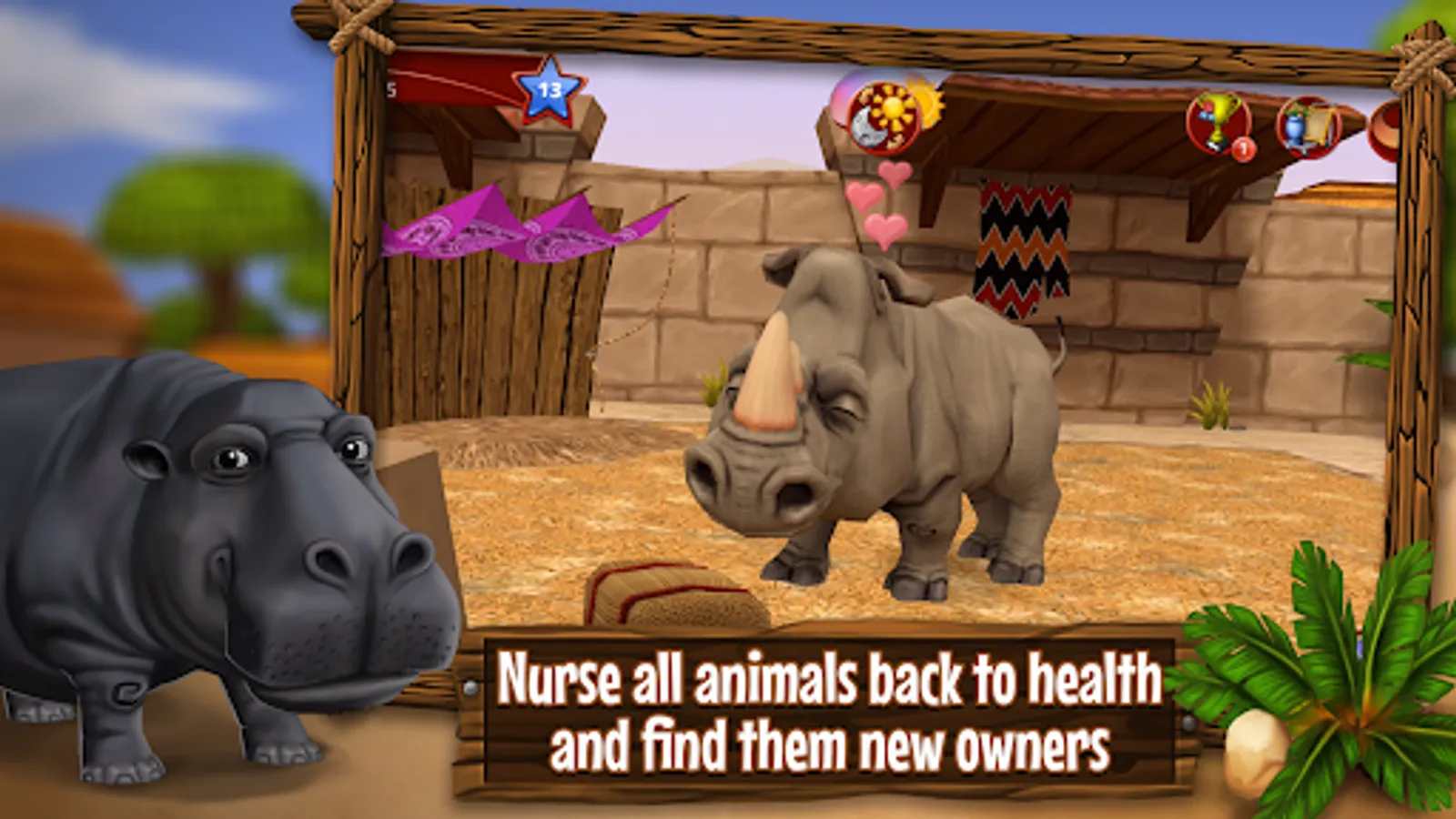 Dive into the wild world of the steppe and observe the Africa's big 5 from up close! The great graphics and realistic animations make the game a wonderful experience for every animal lover. There are lots of challenges waiting for you – choose the right medicine, bandage wounds and give every animal the right amount of food to make them all fit and healthy again.