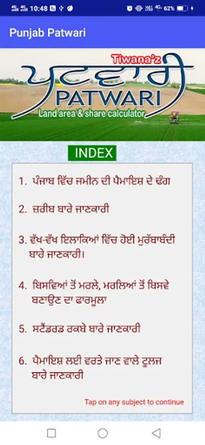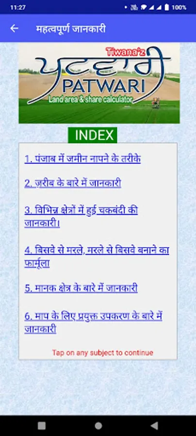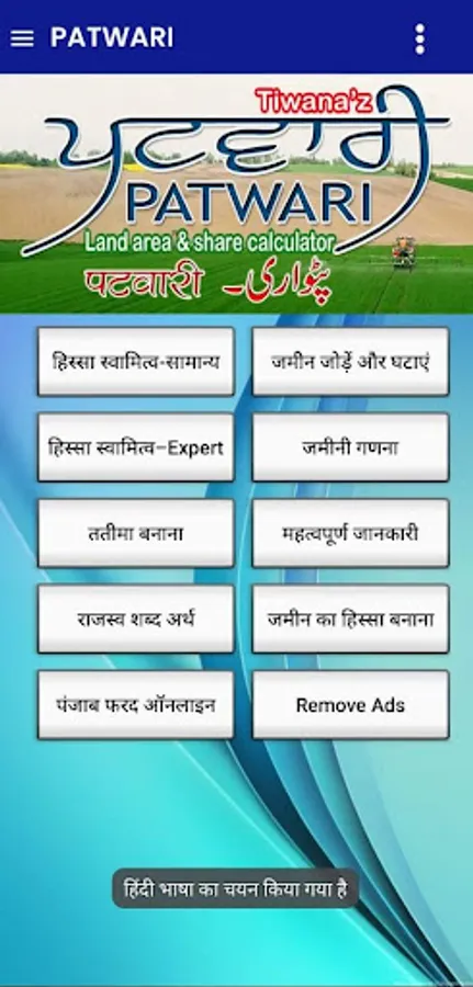 By this app user can easily get area of his/her share in total joint agricultural land can convert land in various forms, can add-subtract land and many other features which will help the user in respect of land measurement