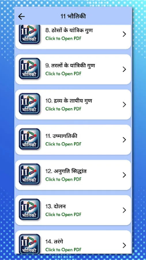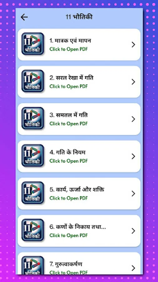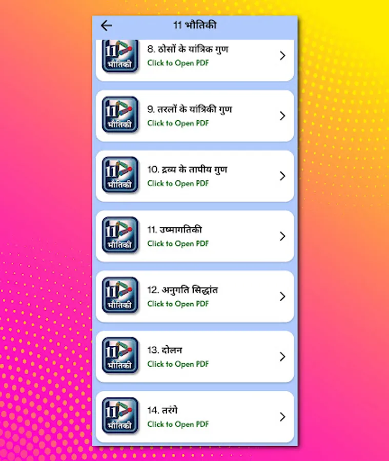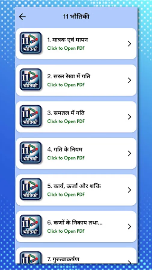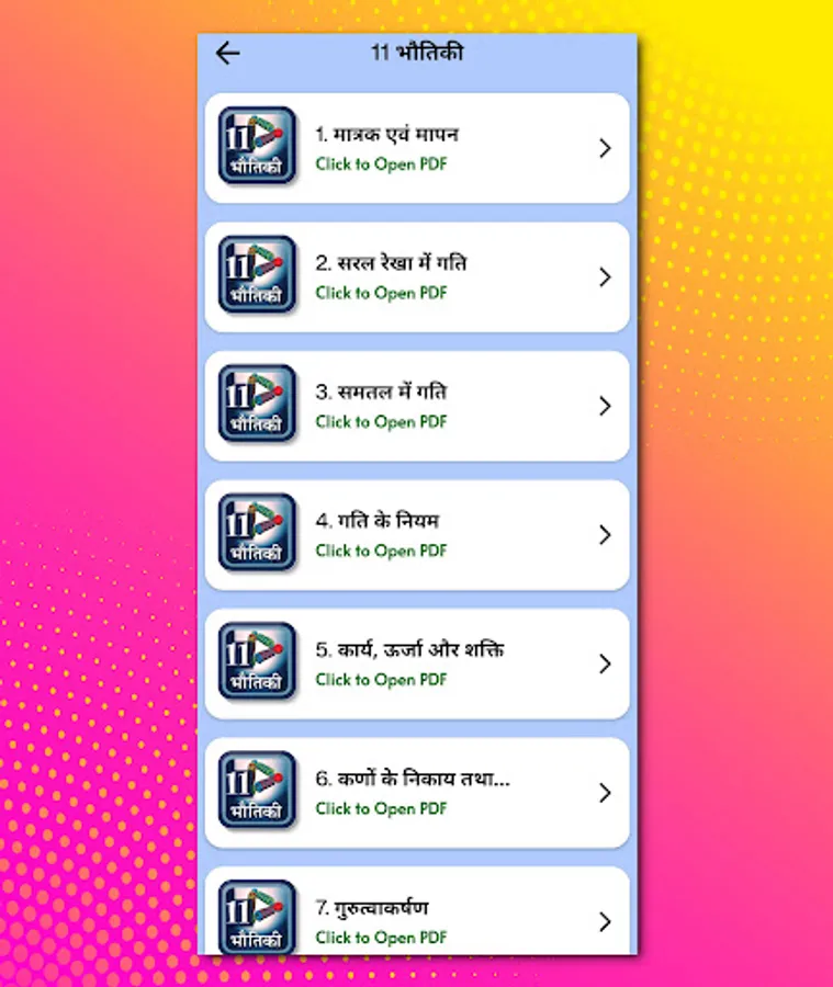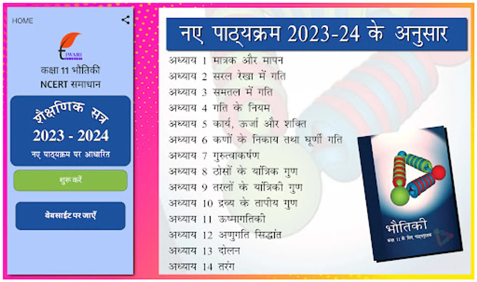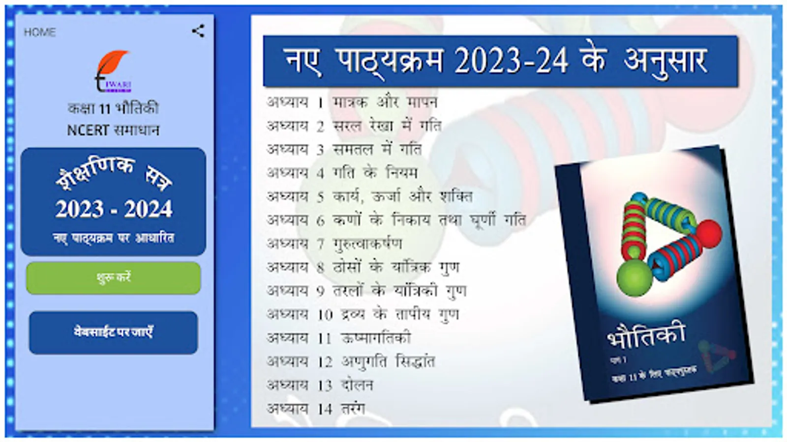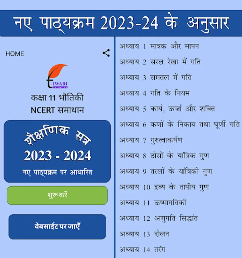 Class 11 Physics in Hindi Medium app contains the solutions of new rationalised NCERT books published for academic session 2023-24. As per new session, the additional exercises are not the part of curriculum 2023-24. That is why, chapter 1 and all the additional exercises are removed from the app. The class 11 Bhautiki app contains the following chapters: