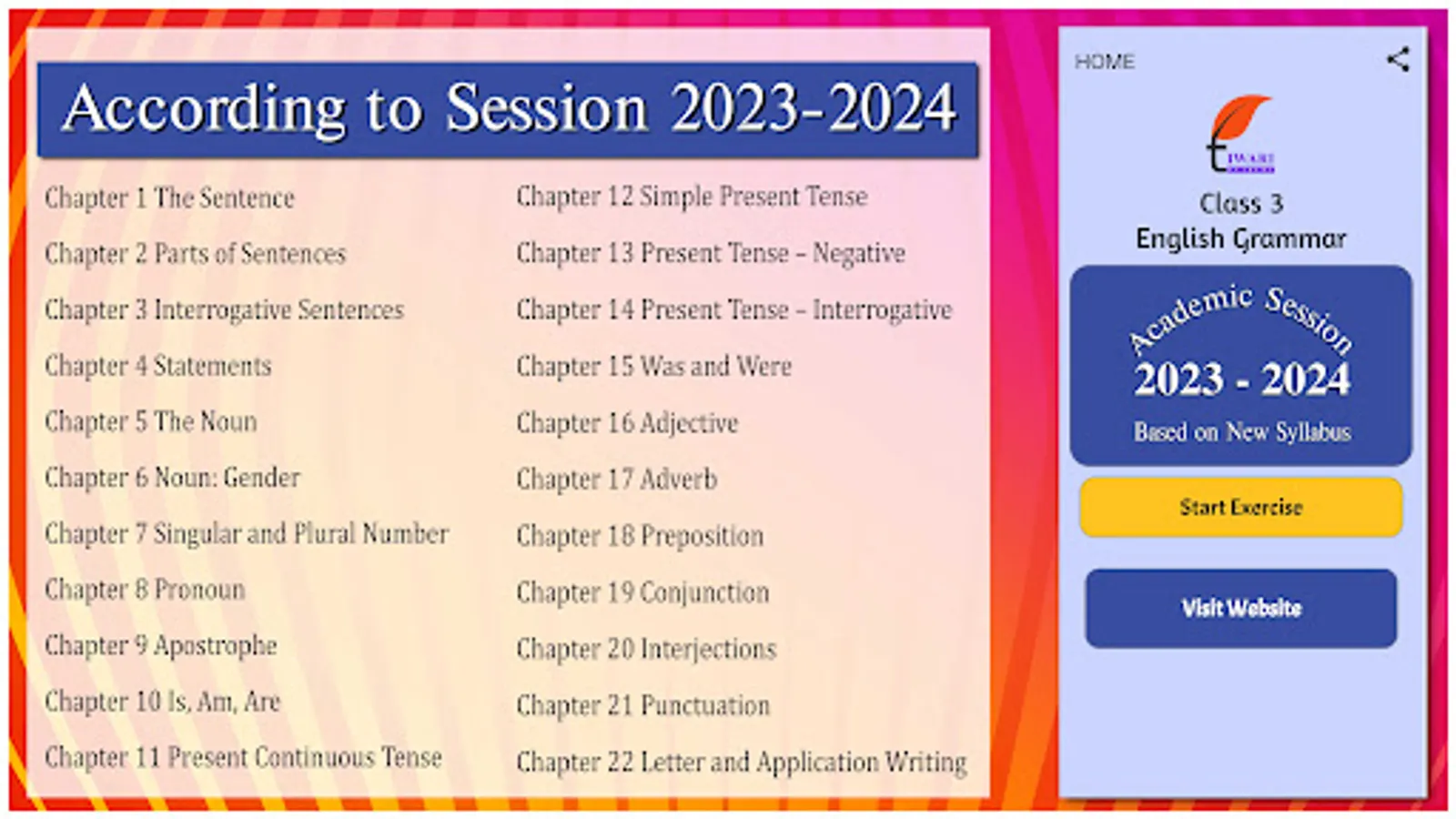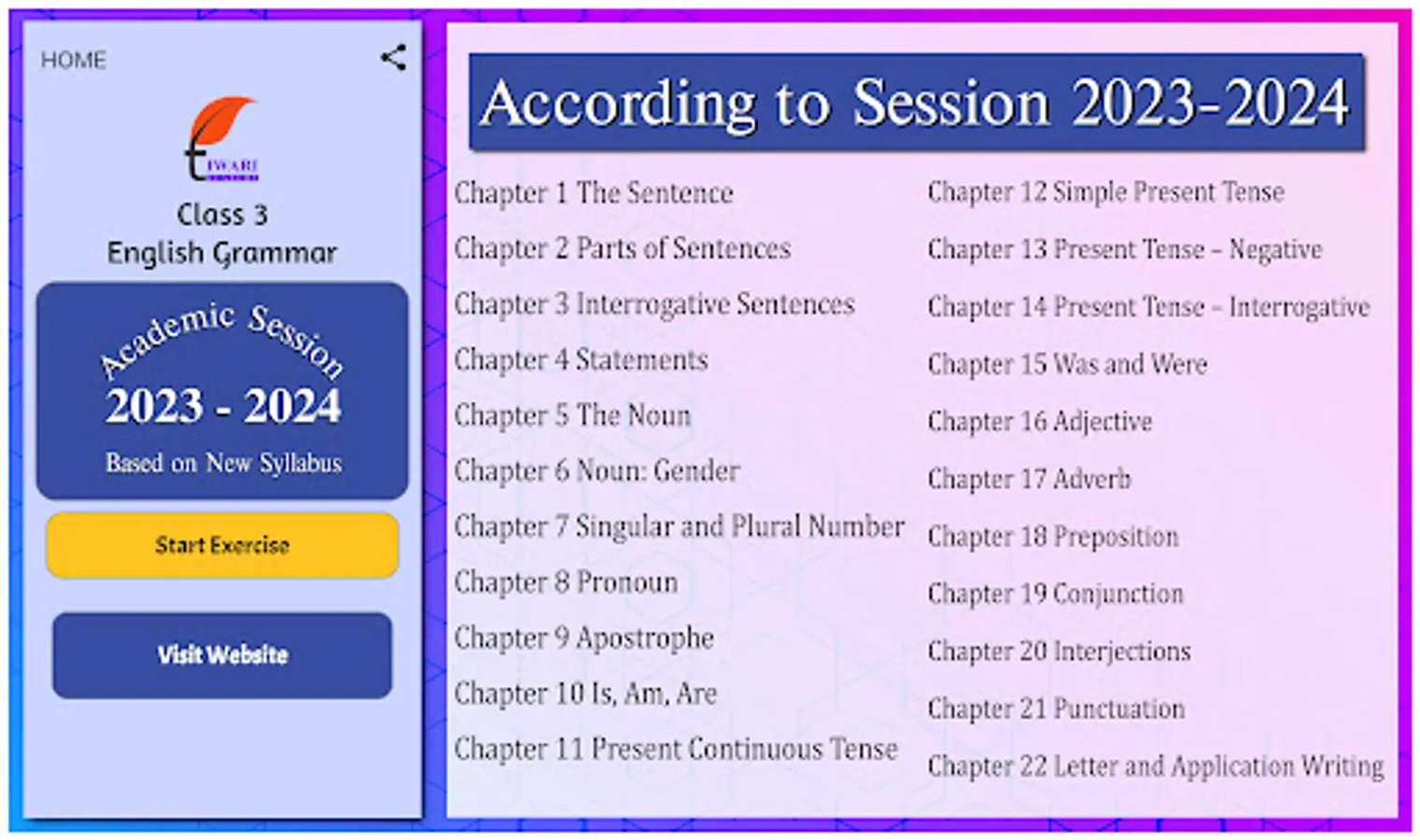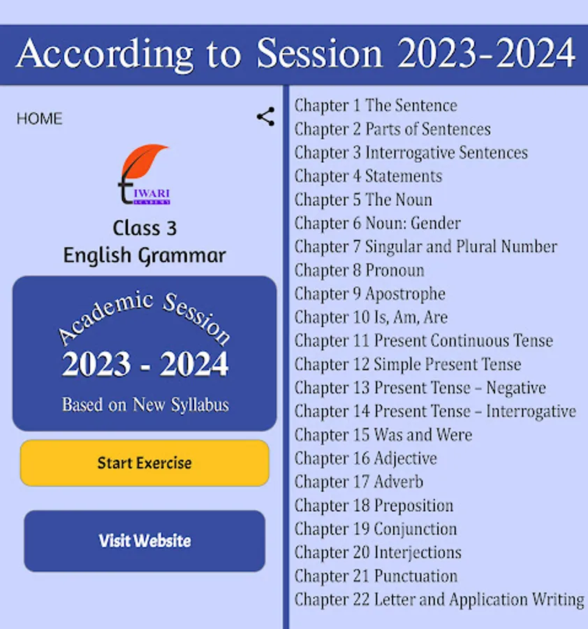 Class 3 English Grammar book for CBSE and State board students updated for academic session 2023-24. The content of chapters are easy to read and understand. At the end of each chapter, the practice exercises and test are added for revision. The chapters of class 3 English Grammar are as follows: